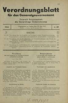 | Verordnungsblatt für das Generalgouvernement = Dziennik Rozporządzeń dla Generalnego Gubernatorstwa. 1942, Nr. 49 (23. Juni) | Nov 26, 2014 |