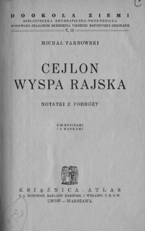 | Cejlon wyspa rajska : notatki z podróży z 28 rycinami i 2 mapkami - Tarnowski, Michał (1895-1978) | Mar 28, 2023 |