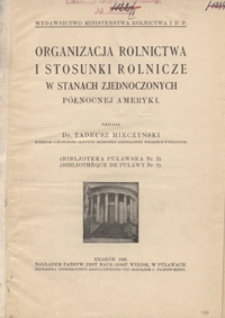| Organizacja rolnictwa i stosunki rolnicze w Stanach Zjednoczonych Północnej Ameryki - Mieczyński, Tadeusz (1888-1947) | 2 kwi 2022 |