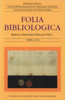 Juda, Maria. Red. ; Uniwersytet Marii Curie-Skłodowskiej (Lublin). Biblioteka Główna ; Instytut Informacji Naukowej i Bibliotekoznawstwa Uniwersytetu Marii Curie-Skłodowskiej