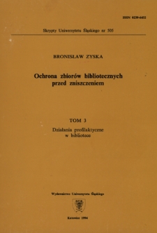 (Ochrona zbiorów bibliotecznych przed zniszczeniem / Bronisław Zyska ; t. 3) ; (Skrypty Uniwersytetu Śląskiego; nr 505)