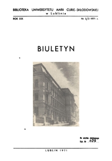 Biuletyn Biblioteki Uniwersytetu Marii Curie-Skłodowskiej w Lublinie. R. 19 (1971)