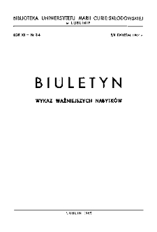 Tyt. poprz.: Wykaz Ważniejszych Nabytków ; Tyt. nast.: Biuletyn Biblioteki UMCS