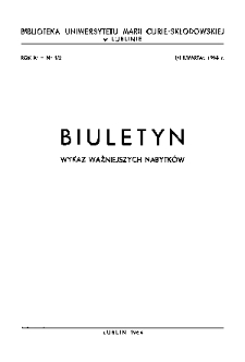 Tyt. poprz.: Wykaz Ważniejszych Nabytków ; Tyt. nast.: Biuletyn Biblioteki UMCS