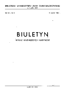Tyt. poprz.: Wykaz Ważniejszych Nabytków ; Tyt. nast.: Biuletyn Biblioteki UMCS