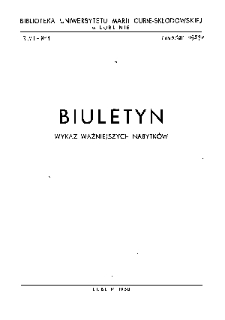 Tyt. poprz.: Wykaz Ważniejszych Nabytków ; Tyt. nast.: Biuletyn Biblioteki UMCS