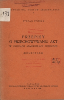 Tytuł: Przepisy o przechowywaniu akt w urzędach administracji publicznej : (komentarz)