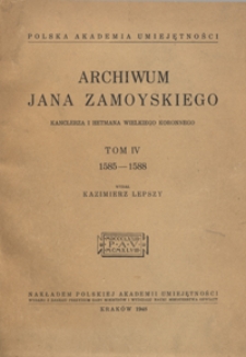 | Archiwum Jana Zamoyskiego, kanclerza i hetmana wielkiego koronnego. T. 4, 1585-1588 | 16 mar 2021 |