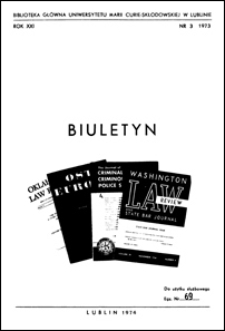 Biuletyn Biblioteki Uniwersytetu Marii Curie-Skłodowskiej w Lublinie. R. 21 (1973)