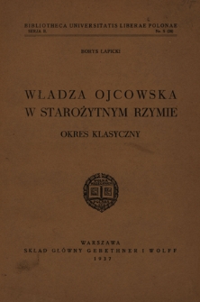 Title: Władza ojcowska w starożytnym Rzymie : okres klasyczny