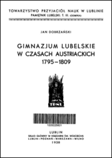 | Gimnazjum Lubelskie w czasach austriackich 1795-1809 - Dobrzański, Jan (1901-1997) | 15 wrz 2011 |