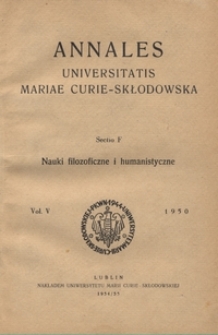 Tytuł: Annales Universitatis Mariae Curie-Skłodowska. Sectio F, Nauki Filozoficzne i Humanistyczne Vol. 5 (1950)