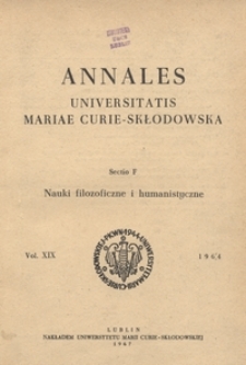 Title: Annales Universitatis Mariae Curie-Skłodowska. Sectio F, Nauki Filozoficzne i Humanistyczne Vol. 19 (1964)