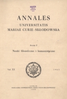 Annales Universitatis Mariae Curie-Skłodowska. Sectio F, Nauki Humanistyczne ; Roczniki Uniwersytetu Marii Curie-Skłodowskiej. Dział F, Nauki Filozoficzne i Humanistyczne