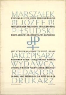 | Marszałek Józef Piłsudski jako pisarz, wydawca, redaktor, drukarz : wystawa [...] - Seifert, Franciszek (1900-1964) | 13 paź 2020 |