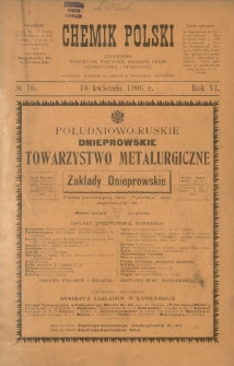 | Chemik Polski. R. 6, nr 16 (18 kwietnia 1906) | 9 sie 2016 |