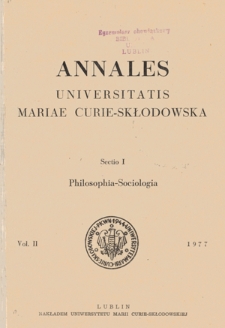 Annales Universitatis Mariae Curie-Skłodowska. Sectio I, Philosophia-Sociologia. Vol. 2 (1977)