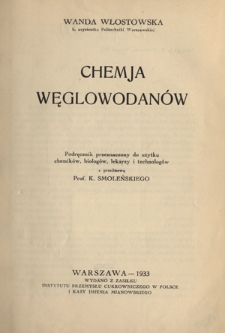 | Chemja węglowodanów : podręcznik przeznaczony do użytku chemików, biologów, lekarzy i technologów - Włostowska, Wanda | Mar 24, 2023 |