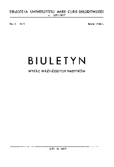 Tyt. poprz.: Wykaz Ważniejszych Nabytków ; Tyt. nast.: Biuletyn Biblioteki UMCS