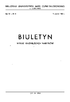 Title: Biuletyn Biblioteki Uniwersytetu Marii Curie-Skłodowskiej w Lublinie. R. 8 (1960) nr 4