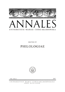 Annales Universitatis Mariae Curie-Skłodowska. Sectio FF, Philologiae. Vol. 30 (2012)