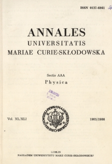 Title: Annales Universitatis Mariae Curie-Skłodowska, Sectio AAA, Physica. Vol. 40/41 (1985/1986)