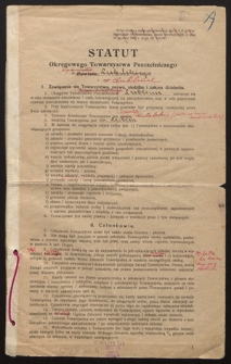 4, [2] strony ; Na statucie drukowanym również notki rękopiśmienne, podpisy założycieli, notariusza, a także pieczątki oraz odbita w laku pieczęć Wojewody Lubelskiego