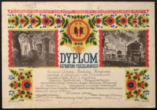 dyplom dla Stanisława Jasińskiego, wydany przez Zarząd Główny Rodziny Kolejowej