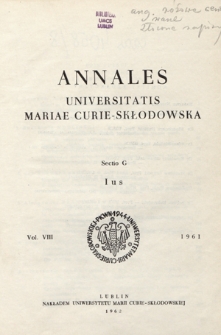 Annales Universitatis Mariae Curie-Skłodowska, Sectio G Ius Vol. 8 (1961)