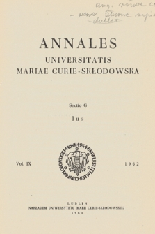 Annales Universitatis Mariae Curie-Skłodowska, Sectio G, Ius Vol. 9 (1962)