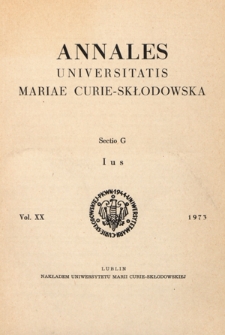 Annales Universitatis Mariae Curie-Skłodowska. Sectio G, Ius. Vol. 20 (1973)