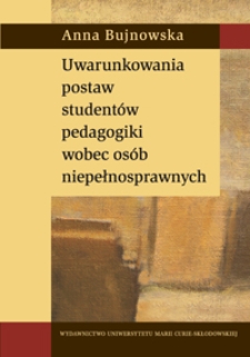 | Uwarunkowania postaw studentów pedagogiki wobec osób niepełnosprawnych - Bujnowska, Anna | 6 mar 2012 |