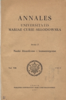 Annales Universitatis Mariae Curie-Skłodowska. Sectio F, Nauki Humanistyczne ; Roczniki Uniwersytetu Marii Curie-Skłodowskiej. Dział F, Nauki Filozoficzne i Humanistyczne