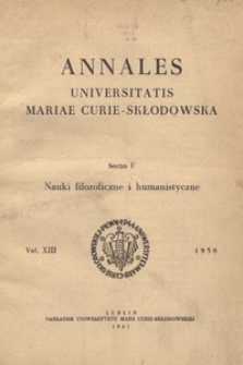 Annales Universitatis Mariae Curie-Skłodowska. Sectio F, Nauki Humanistyczne ; Roczniki Uniwersytetu Marii Curie-Skłodowskiej. Dział F, Nauki Filozoficzne i Humanistyczne