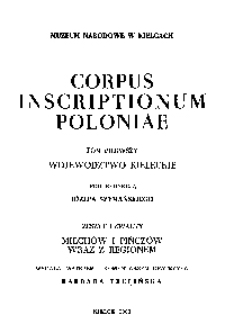 | Corpus inscriptionum Poloniae. T. 1, Województwo kieleckie. Z. 4, Miechów i Pińczów wraz z regionem | Oct 25, 2012 |