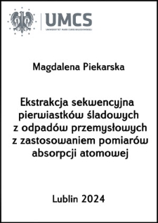 Title: Ekstrakcja sekwencyjna pierwiastków śladowych z odpadów przemysłowych z zastosowaniem pomiarów absorpcji atomowej