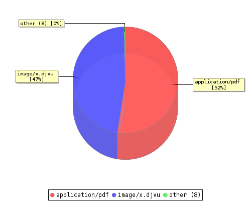 Liczba w nawiasach to łączna liczba obiektów zawierających treści w danym formacie